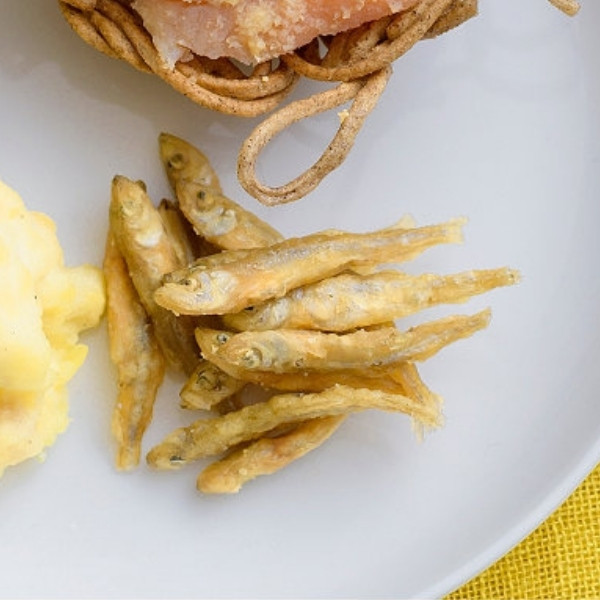 塩味が効いた「わかさぎ空揚」は、そのままで完璧な肴に。